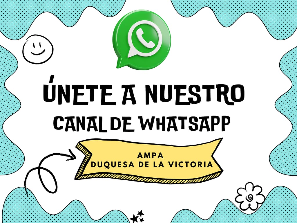 Este curso estrenamos canal de WhatsApp del AMPA Duquesa de la Victoria para compartir con vosotros todas las actividades que realizamos como AMPA y estéis siempre al tanto de las novedades y eventos de una manera sencilla e inmediata.