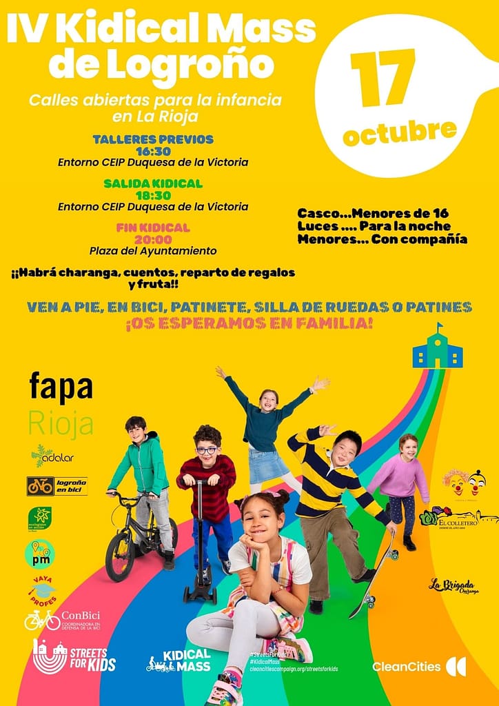 Queridas familias!! Anotad en el calendario este 17 de octubre porque celebramos la IV Kidical Mass en nuestro cole Duquesa de la Victoria 🙂